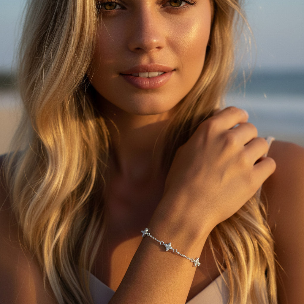 Låt din handled gnistra med vårt förtrollande armband, där små stenar bildar vackra blommor. Detta smycke kombinerar elegans med en lekfull design som fångar ljuset och framhäver din unika stil.