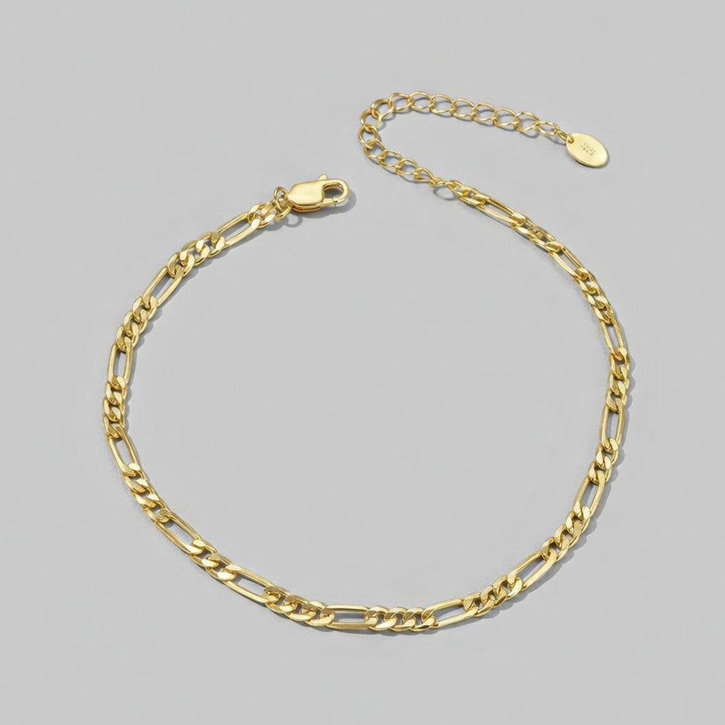 Snygg fotlänk i figarokedja tillverkad av sterlingsilver som finns i färgerna silver och guldplätering. Med sin klassiska och tidlösa design kommer denna fotlänk aldrig att bli omodern, och den kommer garanterat vara en riktigt uppskattad accessoar i din smyckessamling!