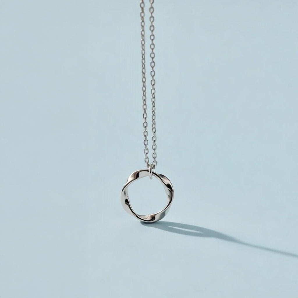 Halsband med ett runt hängsmycke i en mjukt vriden form som ger ett stilrent uttryck. Den enkla designen gör det lätt att bära och fint att kombinera med andra smycken. Finns i silver och roséguldplätering.
