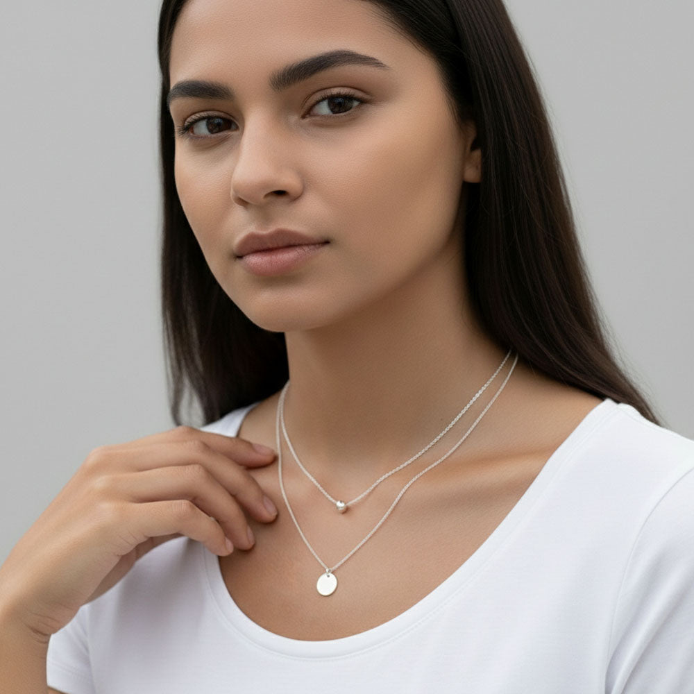 Halsband i sterlingsilver med trendig design och dubbla kedjor. Den innersta kedjan i chokerstil ger en ungdomlig touch. Ett smycke som är lätt att matcha och kombinerar modern stil med tidlös elegans.