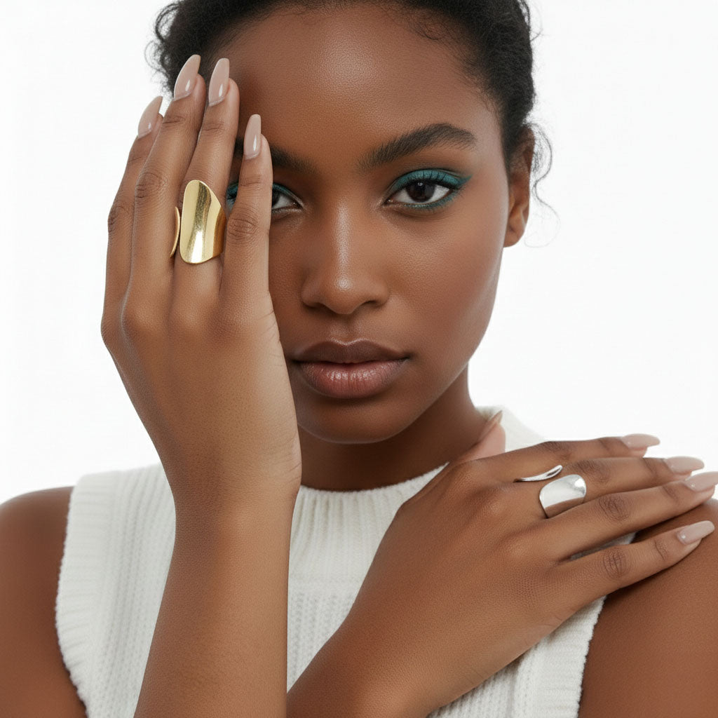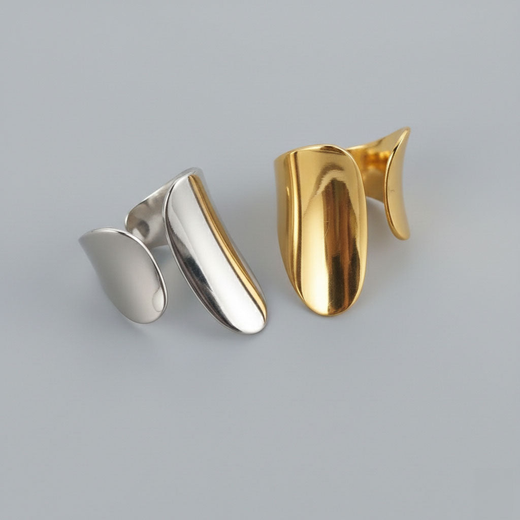 Statementring i sterlingsilver med en mjuk, organiskt formad siluett. Den släta ytan skapar ett rent och modernt uttryck. Ett smycke som ger ett tydligt visuellt intryck och lyfter helheten.