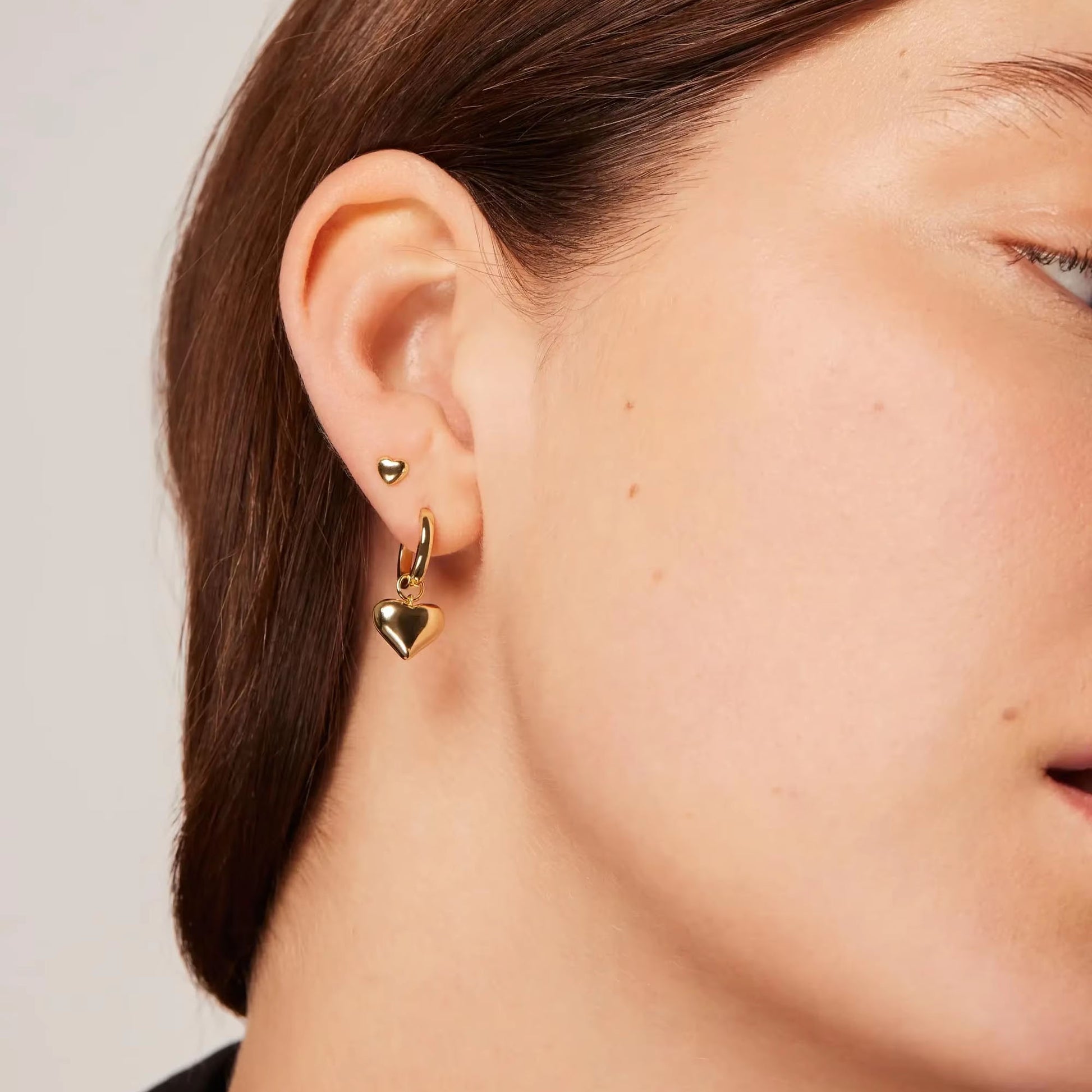 Ett par stilrena hoops med hängande hjärtan i polerad finish. Deras mjuka form ger ett elegant och modernt uttryck som passar både till vardags och fest. Finns i guld- och silverfärgad variant.