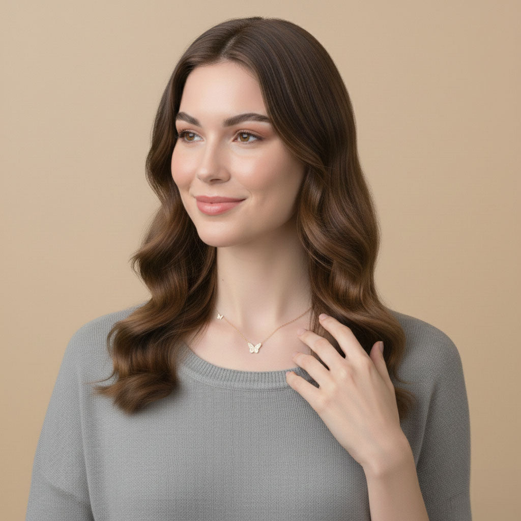 Vackert halsband av sterlingsilver med fjärilsmotiv som kommer att få dig att känna dig extra elegant och feminin. Fjärilen symboliserar förnyelse och skönhet, vilket gör detta halsband till en meningsfull present till någon du tycker om eller till dig själv.