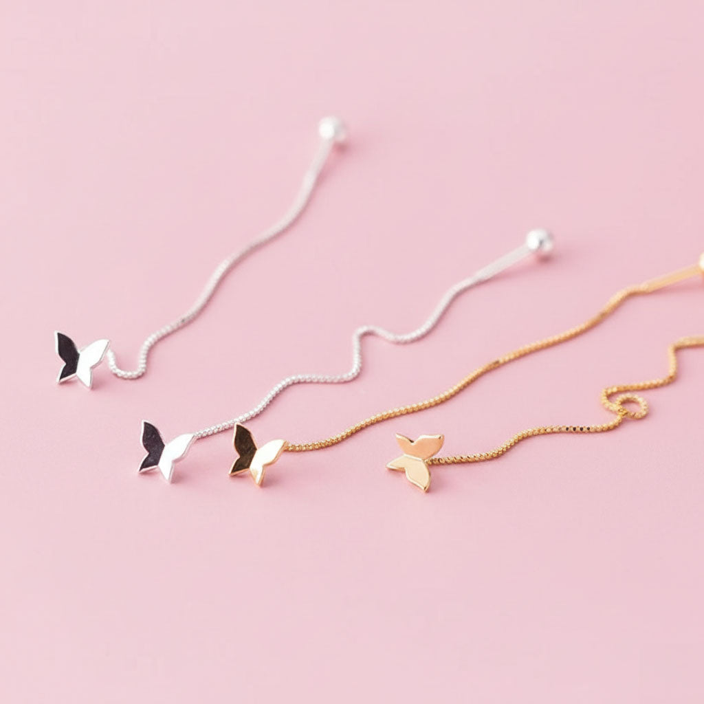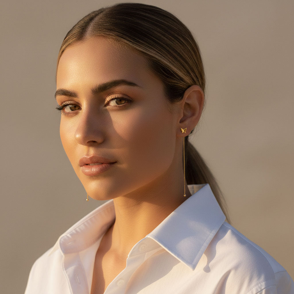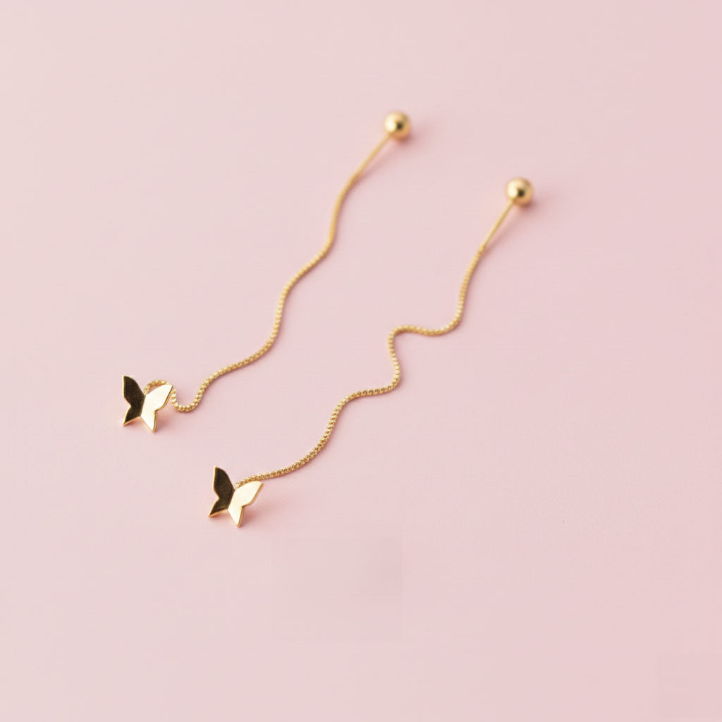 Tassel-örhängen med ett fint fjärilsmotiv som rör sig mjukt när de bärs. Den tunna kedjan ger ett elegant fall och skapar en lätt och luftig känsla. Ett smycke som passar lika bra till enkla dagar som när du vill ha något lite mer uttrycksfullt.
