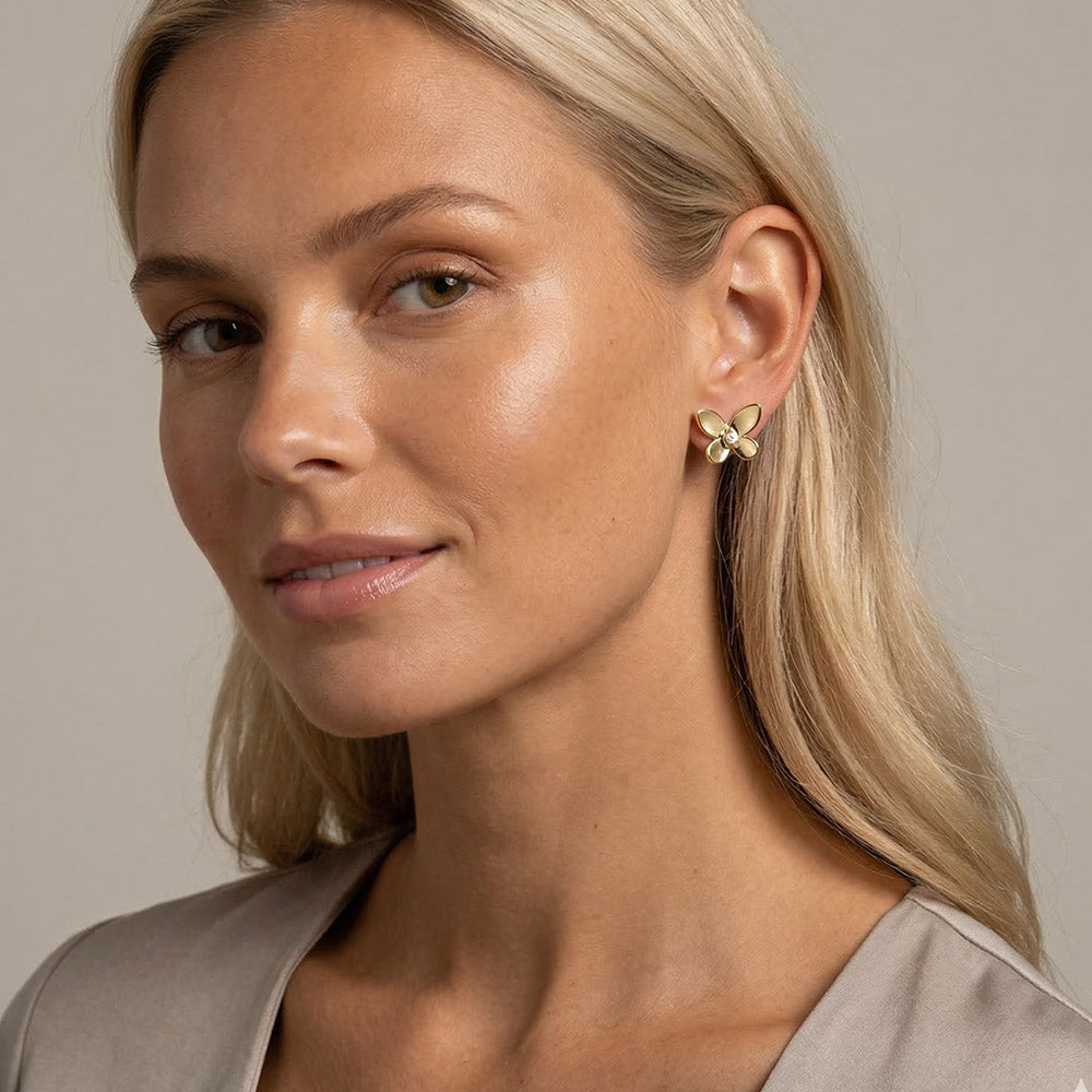 Dessa örhängen har en unik och skimrande design formad som en vacker blomma. De är utrustade med praktiska platta lås som gör dem bekväma att bära samtidigt som de håller örhängena säkert på plats. Perfekta för både vardagsbruk och speciella tillfällen, dessa örhängen lägger till en touch av lekfull glamour till varje outfit.