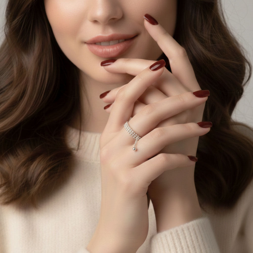 Chic och trendig kedjering i sterlingsilver med en justerbar öppning för perfekt passform. Den unika treskiktsdesignen gör ringen till en stilhöjare som adderar en sofistikerad och modern touch till varje outfit — perfekt för både vardag och fest.