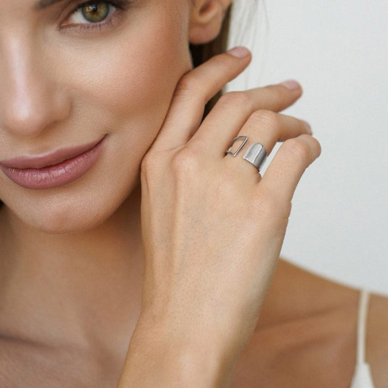 En smakfull ring i sterlingsilver med modern geometrisk design. Den öppna formen ger ett unikt och trendigt uttryck som passar lika bra till vardags som när du vill sticka ut med något speciellt.