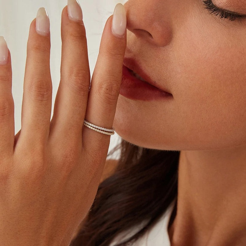För att veta vilken ringstorlek du har, rekommenderar vi att du använder dig av ett snöre eller pappersremsa för att mäta omkretsen av ditt finger. Det går också bra att mäta den inre diametern av en ring du redan har hemma och som du vet passar. Är du mellan två storlekar, välj den större!