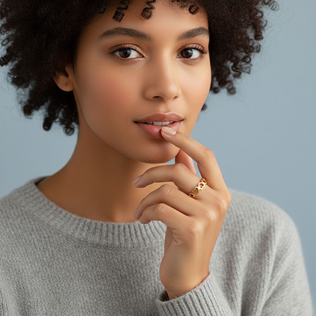 Lova - Justerbar ring med sammanlänkande hjärtan