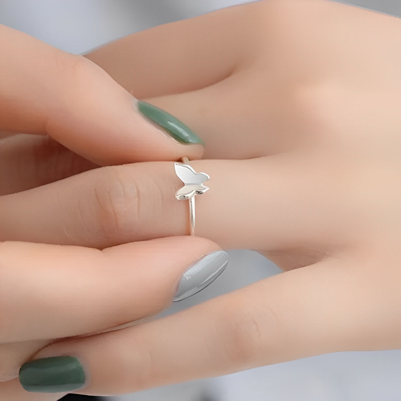 En tunn och elegant ring i sterlingsilver med en liten fjäril som detalj. Den lätta designen ger ett mjukt och feminint uttryck – perfekt för dig som gillar enkla smycken med en fin symbolik.