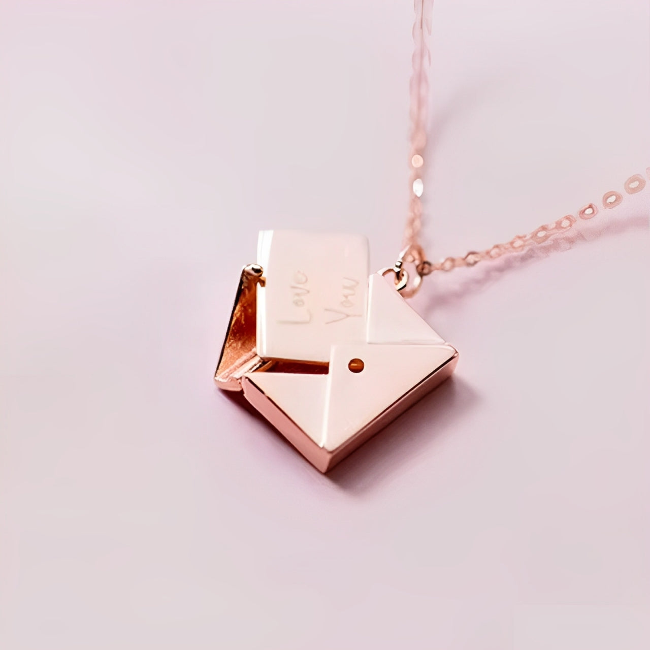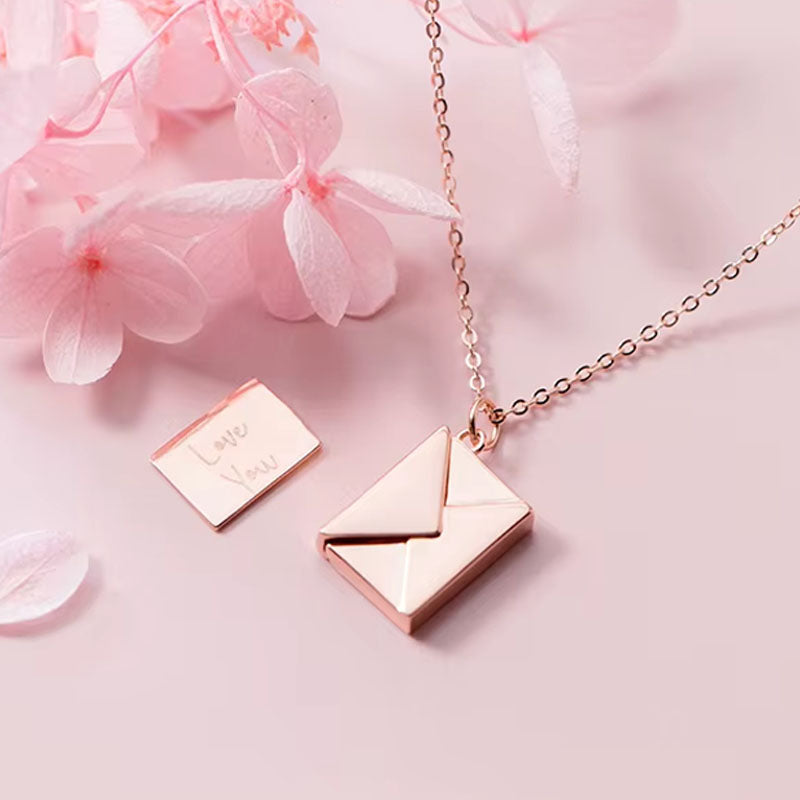 Fint kuverthalsband i hållbart rostfritt stål som finns i silver eller roséguldplätering, med ett öppningsbart hänge som döljer ett graverat brev. Inuti står orden Love You - en personlig detalj att bära nära hjärtat.